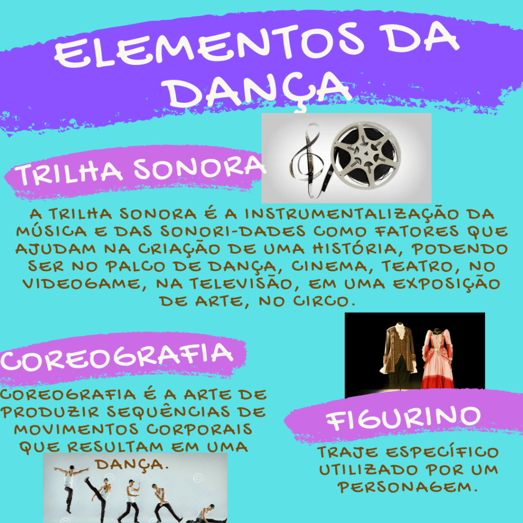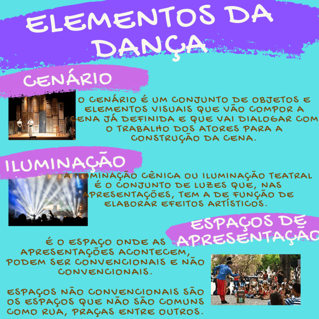1- Leia o que diz a imagem sobre os elementos da dança e assinale a alternativa correta: