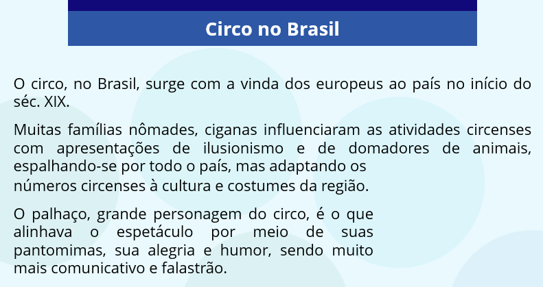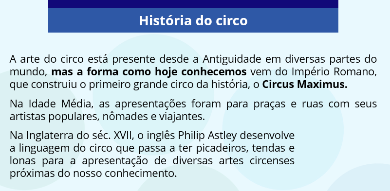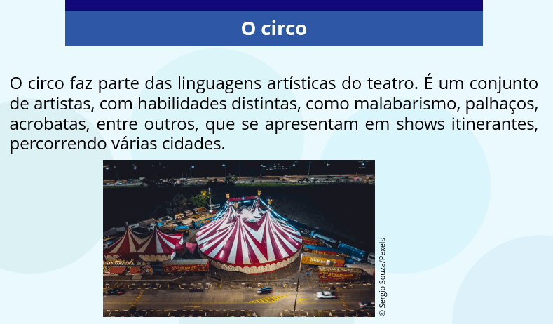 Habilidade: EF05AR18 – Reconhecer e apreciar artistas, grupos e coletivos cênicos de circo-teatro (teatro circense) e circo paulistas, brasileiros e estrangeiros de diferentes épocas, investigando os modos de criação, produção, divulgação, circulação e organização da atuação profissional.