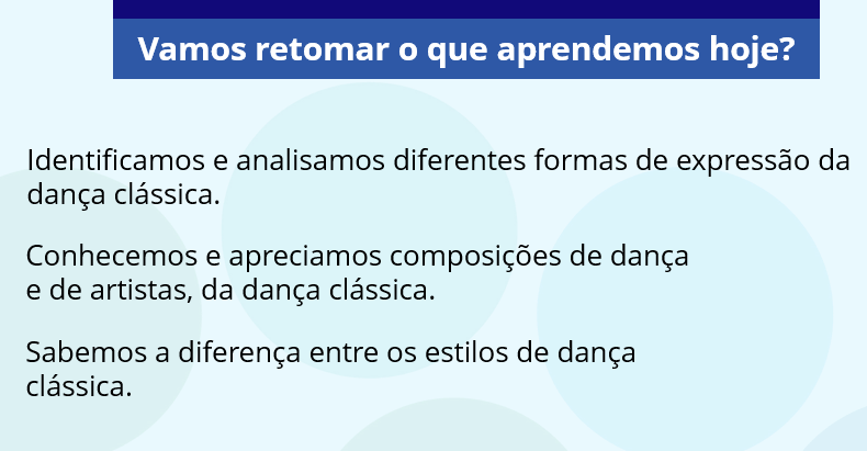 (EF07AR09) Pesquisar e analisar diferentes formas de expressão, representação e encenação das danças clássica e moderna, reconhecendo e apreciando composições de dança de artistas, grupos e coletivos paulistas, brasileiros e estrangeiros de diferentes